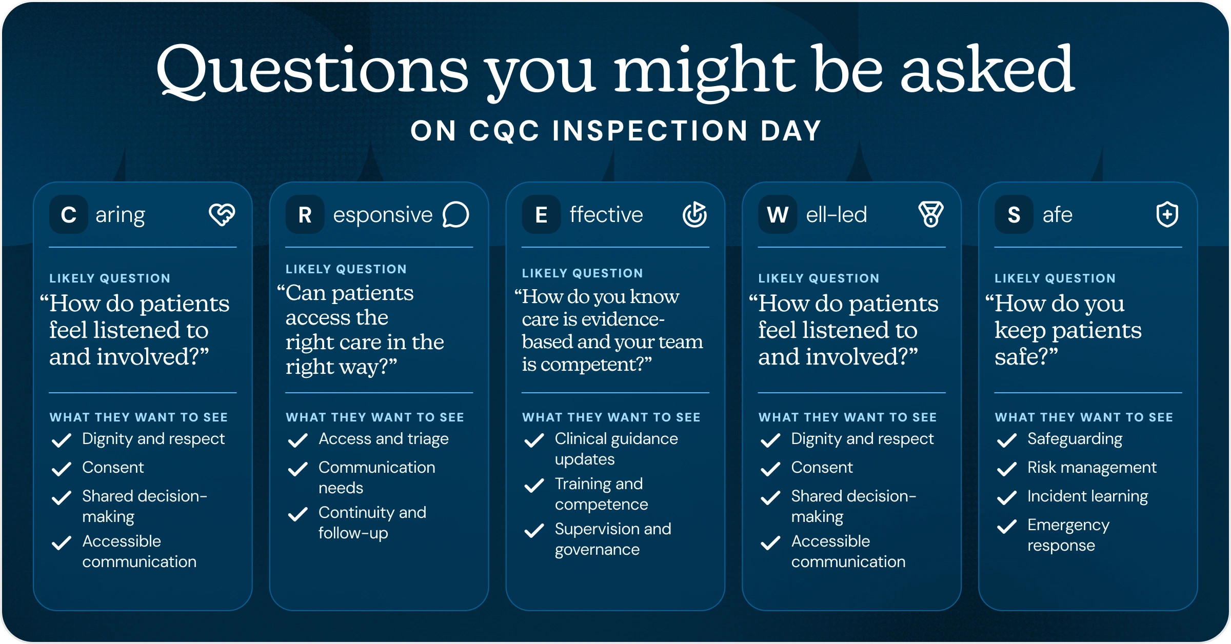 The ‘Caring’ questions are where inspectors test whether patient-centred care is genuinely embedded, not just described in policy.