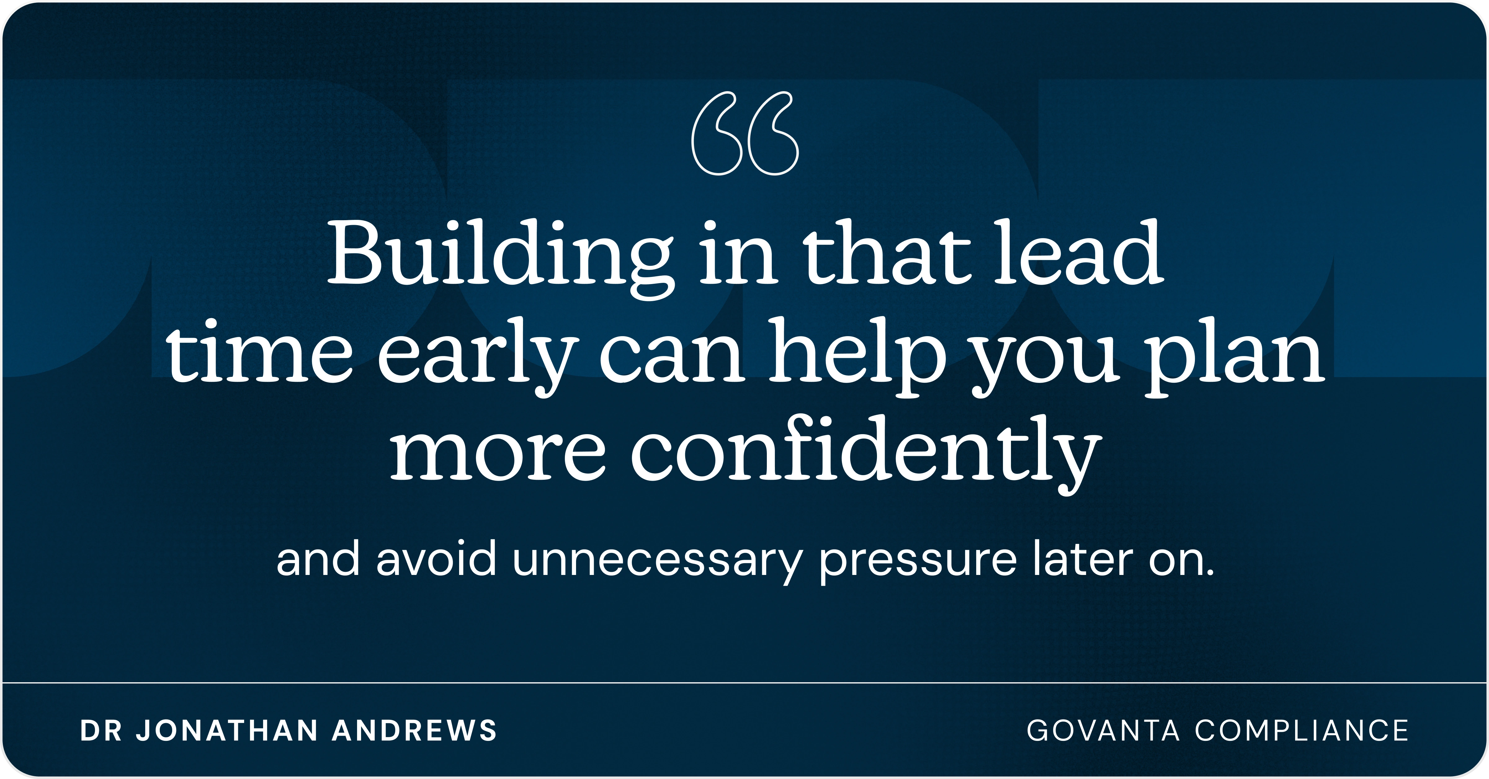That can feel like a long time when you’re eager to get started, but building in that lead time early can help you plan more confidently and avoid unnecessary pressure later on.