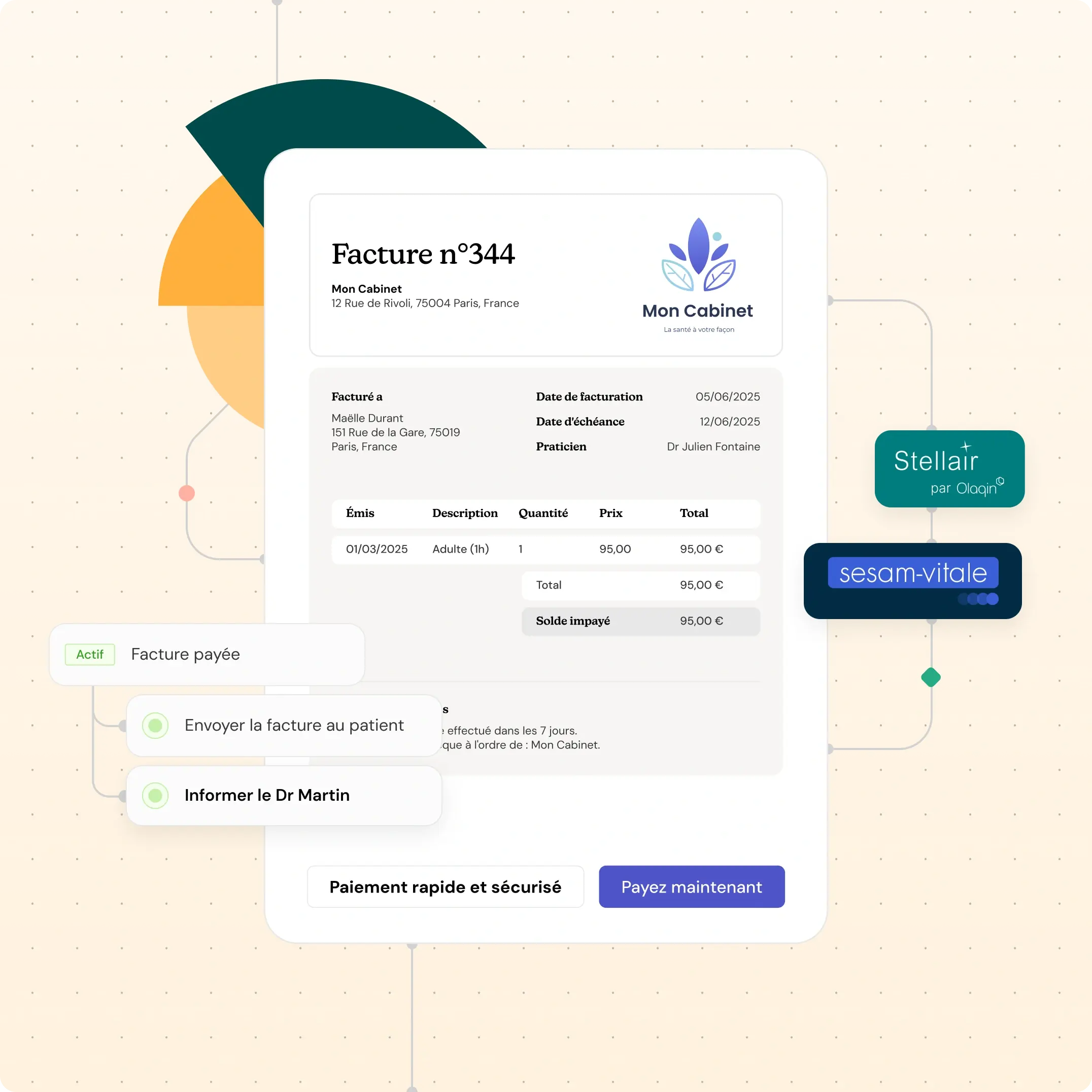 Soumettez des FSE et suivez les retours de la CPAM directement depuis le dossier patient. Les tâches de suivi et les actes médicaux sont automatiquement affectés au bon membre de l’équipe, ce qui permet de continuer à soigner sans ralentissements administratifs.