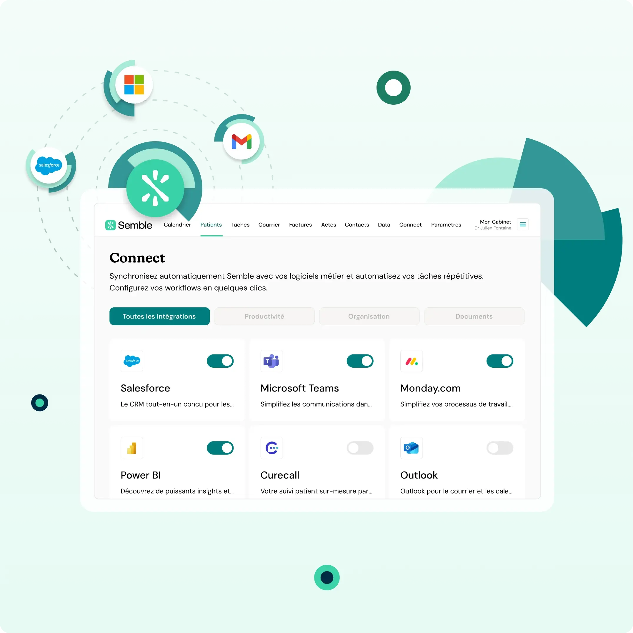 Semble vous connecte à une interface utilisateur moderne, adaptée aux exigences du secteur médical, avec des dossiers patients partagés, une gestion d’accès différenciée selon les profils, et des workflows structurés. Construisez ensuite l’interface visuelle qui vous ressemble. Veillez à ce que les praticiens restent connectés aux bonnes données, conformes aux normes de santé et interopérables entre les systèmes, les appareils et les réseaux hospitaliers. Cette interopérabilité facilite les échanges de données et favorise, par exemple, le lien entre la médecine de ville et l’hôpital.