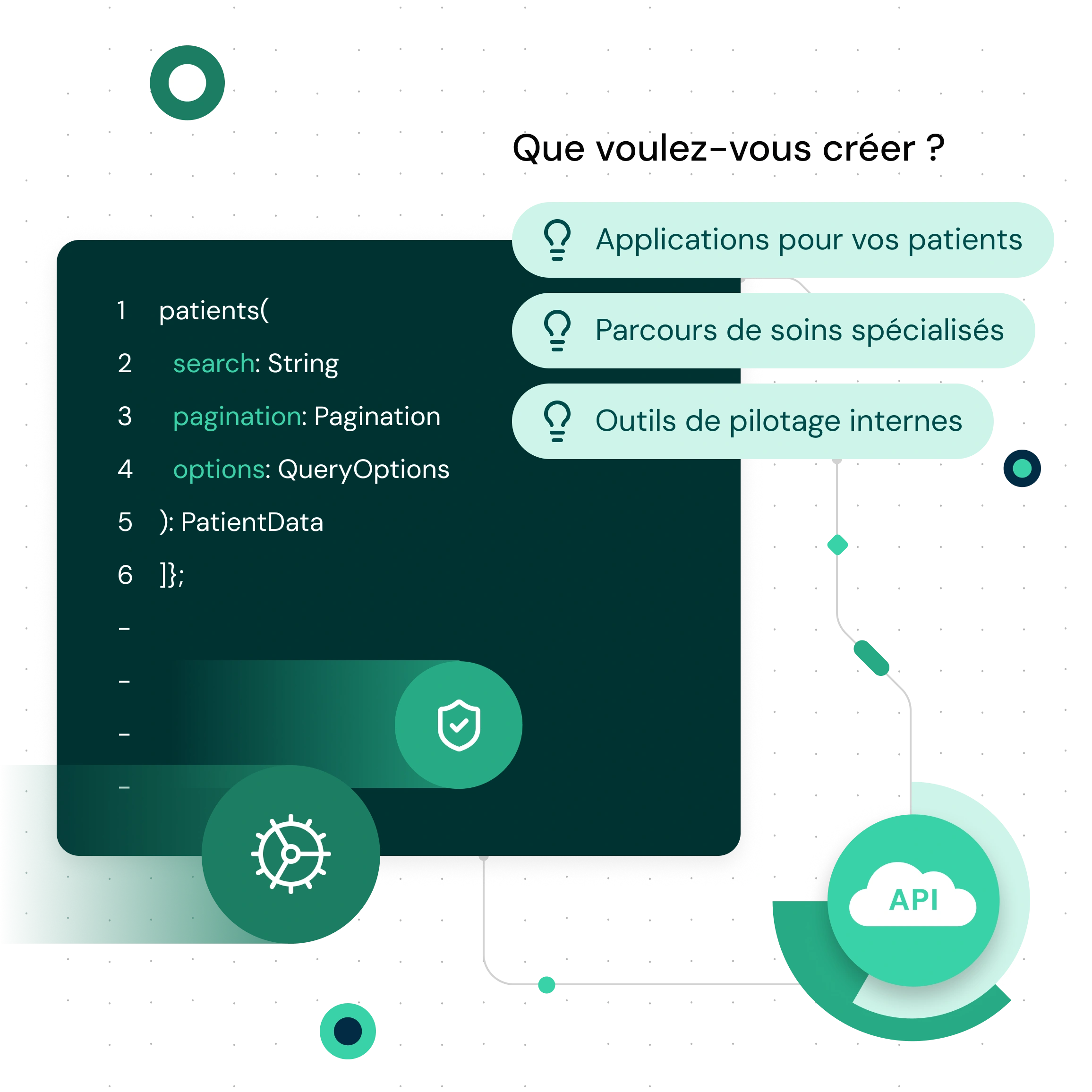 Notre API GraphQL ouverte et sécurisée vous donne les fondations pour créer et lancer des solutions de santé plus rapidement. Utilisez Semble comme un dossier patient modulaire pour vous concentrer sur l'innovation, pas sur la maintenance du code. Nous gérons la sécurité et la conformité, vous vous concentrez sur la création de valeur.