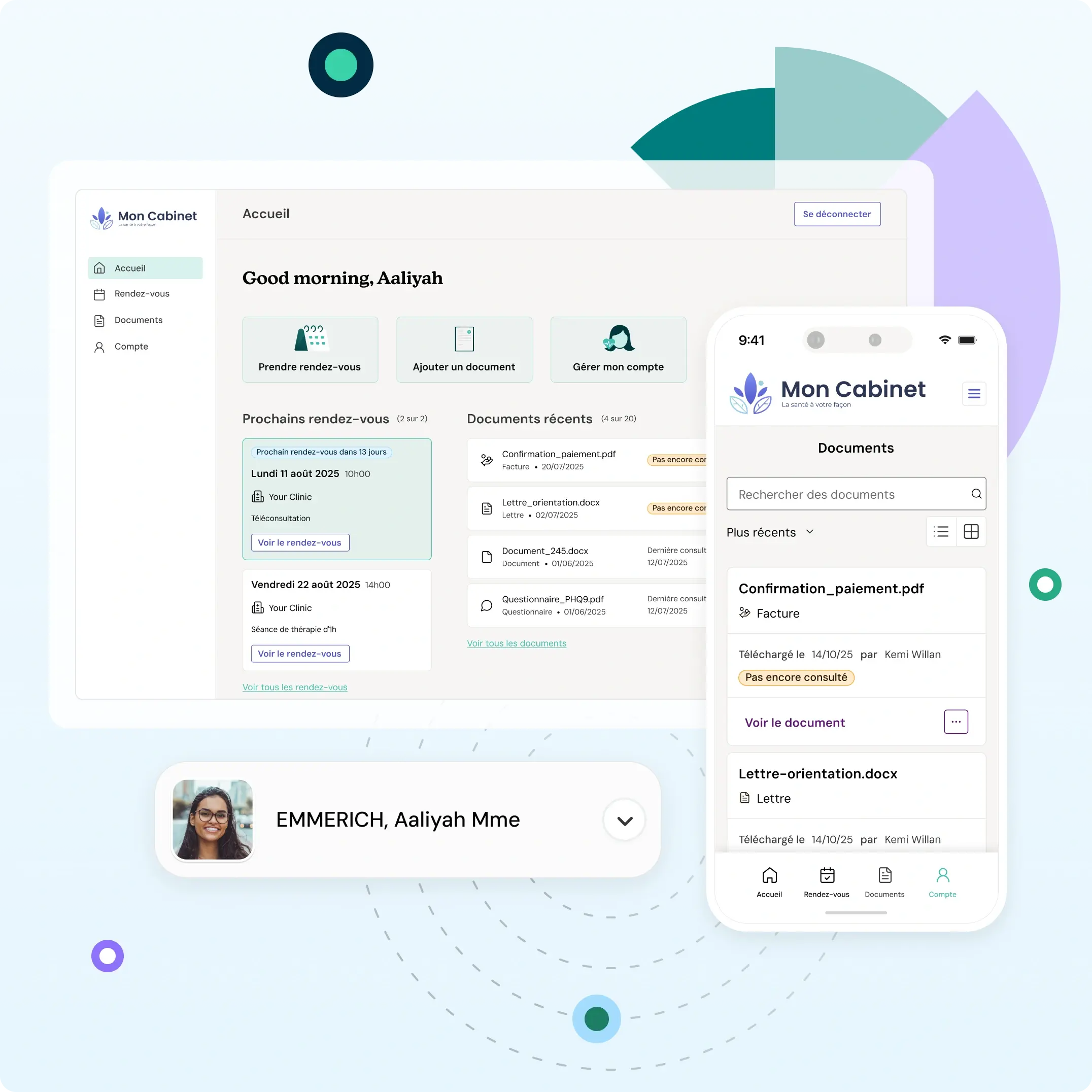 Plus besoin de jongler entre plusieurs outils : gérez les rendez-vous, vos communications personnalisées et les consultations vidéo depuis une seule interface. Votre routine administrative devient rapide et efficace.