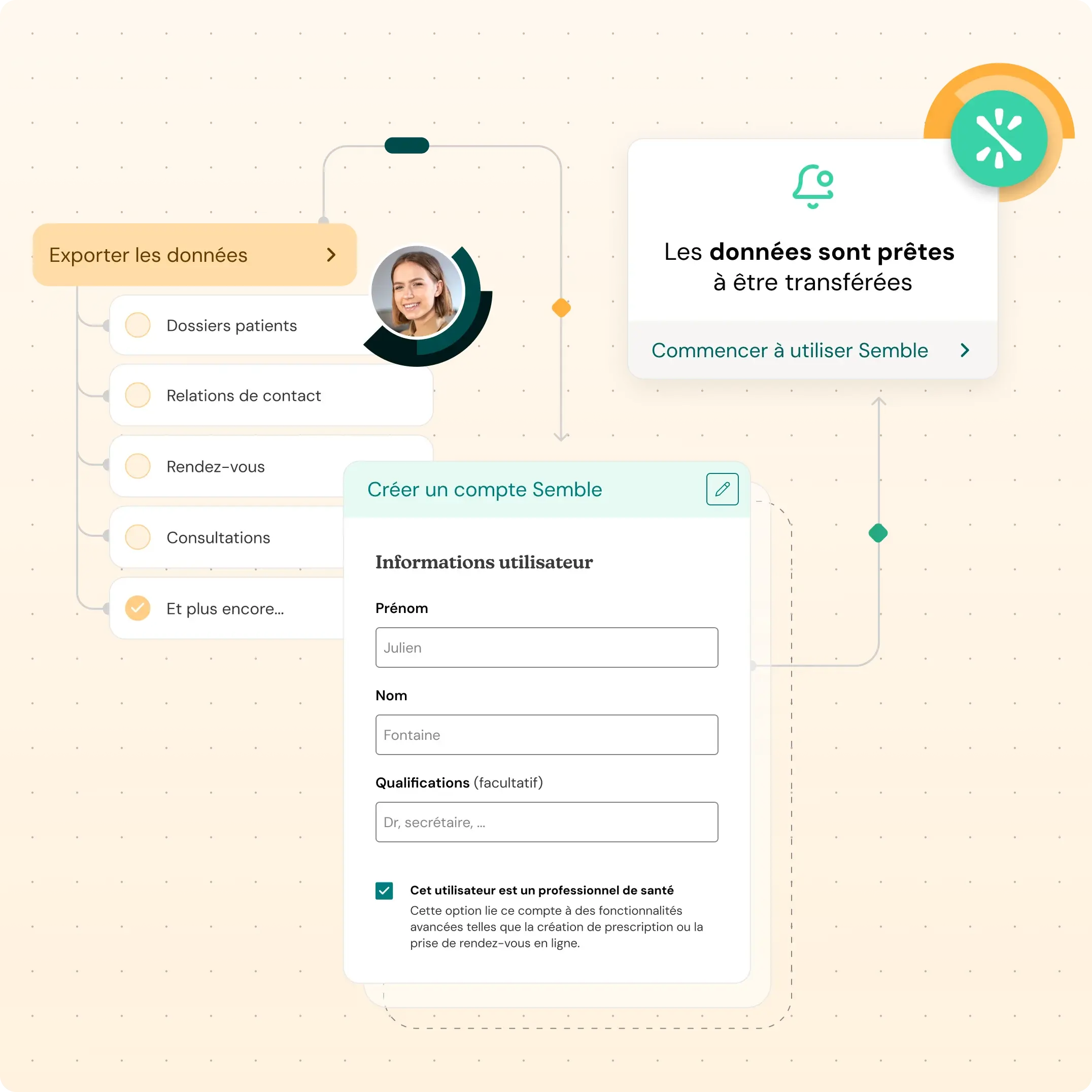 Utilisez Semble dès le premier jour. Vous pouvez commencer à prendre en main à plateforme pendant que nous nous occupons du transfert de vos données.