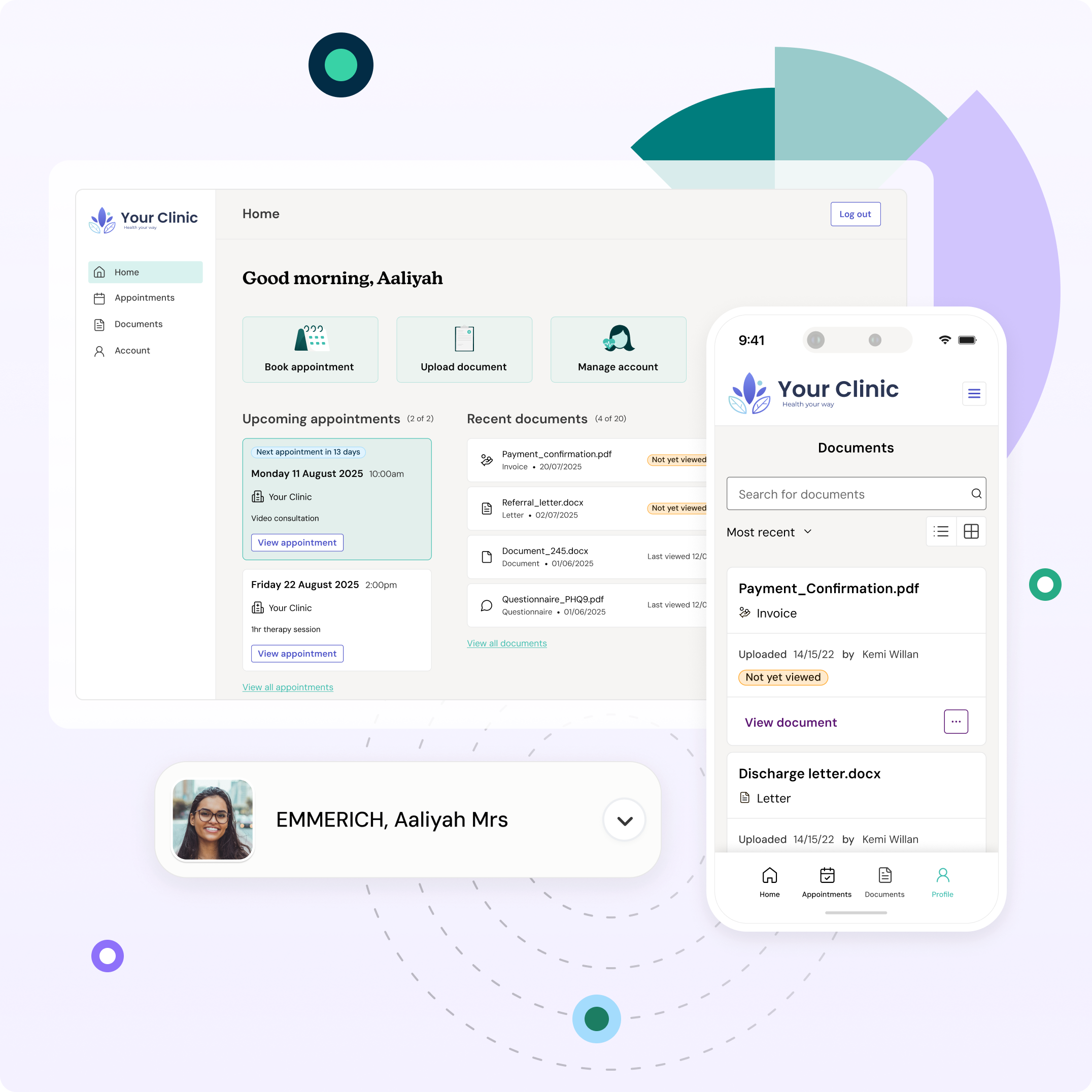 Give patients a beautiful patient portal. One place to manage bookings, view documents and stay informed about their appointments. That means fewer emails and smoother scheduling for you.